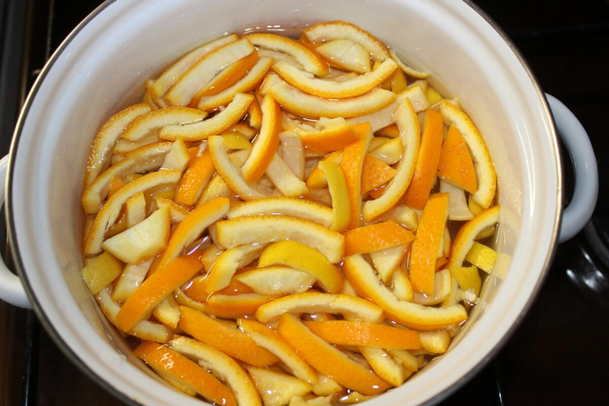 - Sbucciare due limoni e mettere le bucce in una pentola.