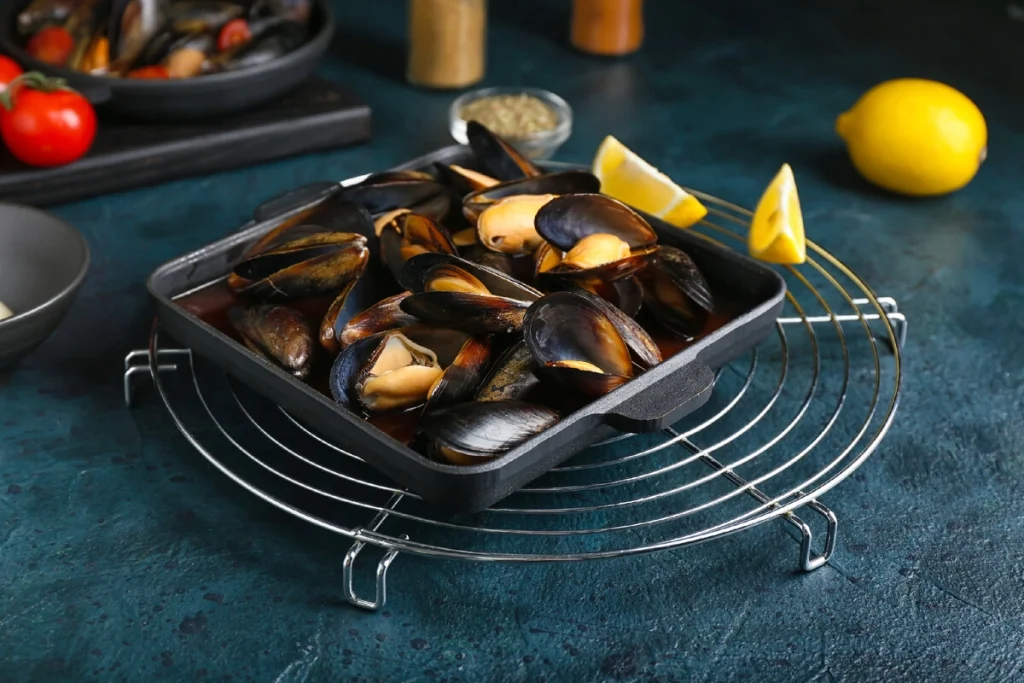 Aggiungere le cozze, coprire la pentola e cuocere a fuoco medio per 3-4 minuti.