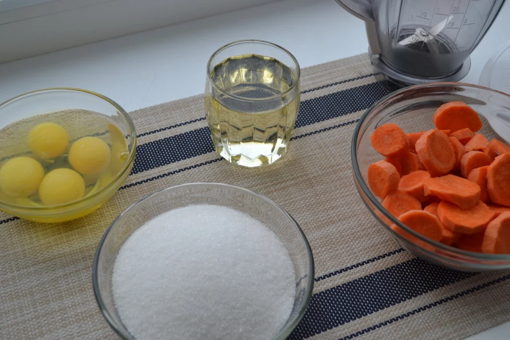 • In un’altra ciotola, sbattere le uova con lo zucchero, l’olio e l’essenza. Aggiungere poi la carota grattugiata finemente.