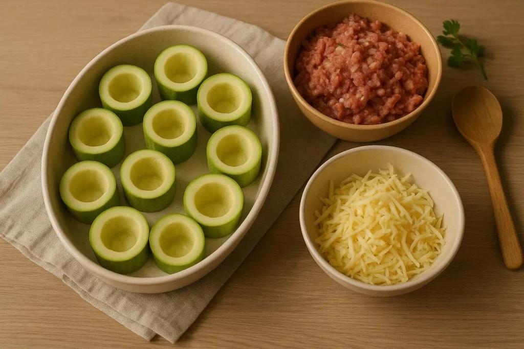 - Tagliare un “cappellino” a ciascuna zucchina e rimuovere la polpa con un cucchiaio.