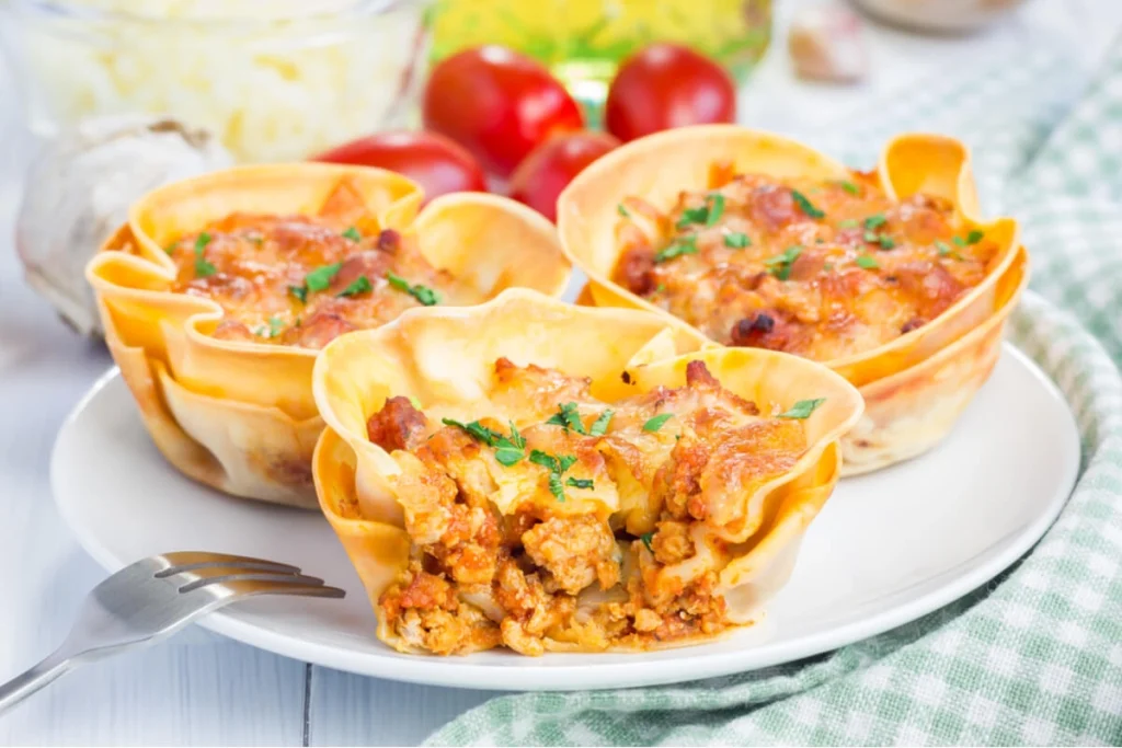 Bastano pochi fogli di pasta per creare mini lasagne a forma di cupcake. Ognuna di esse racchiude in sé il classico sapore italiano: salsa di pomodoro con carne e un po’ di mozzarella, che dopo la cottura in forno forma una crosta croccante. Nei muffin non mancano nemmeno la ricotta cremosa e il parmigiano dal sapore deciso, che sostituiscono la tradizionale besciamella. È un ottimo modo per servire le lasagne in versione individuale, senza tagliare e senza sporcare. I muffin hanno un aspetto invitante e sono comodi da mangiare. Serviteli a una festa con i vostri cari e saranno sicuramente i primi a sparire.