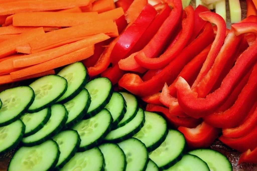 Tagliare i pomodorini a metà. Lavare il cetriolo e tagliarlo a fettine (se ha la buccia spessa, è possibile sbucciarlo prima). Lavare accuratamente le ravanelli e tagliarle a fettine sottili. Pulire entrambi i peperoni dai semi e tagliarli a strisce sottili.