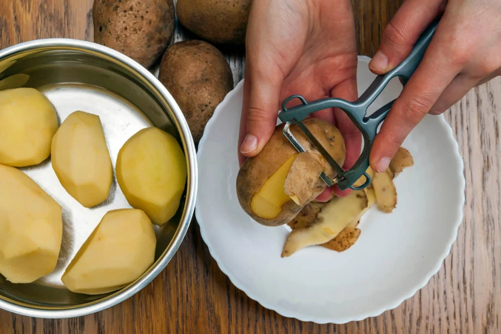 - Immergete le patate in una ciotola con acqua fredda per 5 minuti per eliminare l’amido in eccesso.