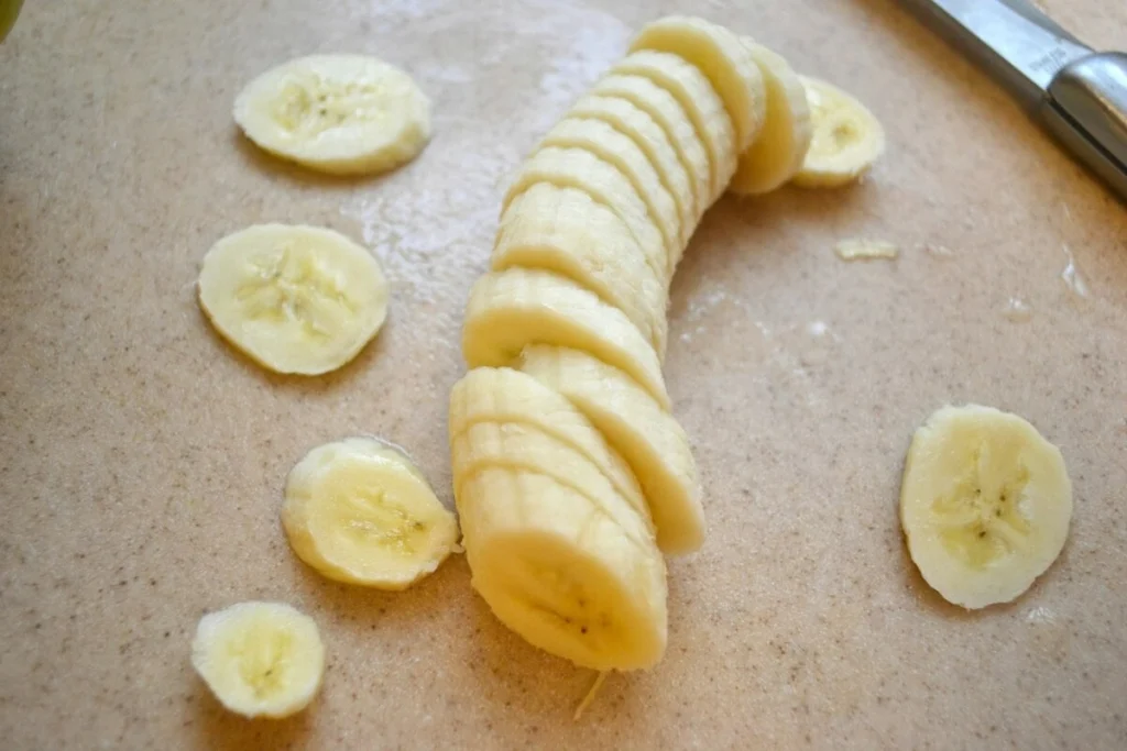 - Tagliare le banane a fette e metterle in freezer per almeno 12 ore.