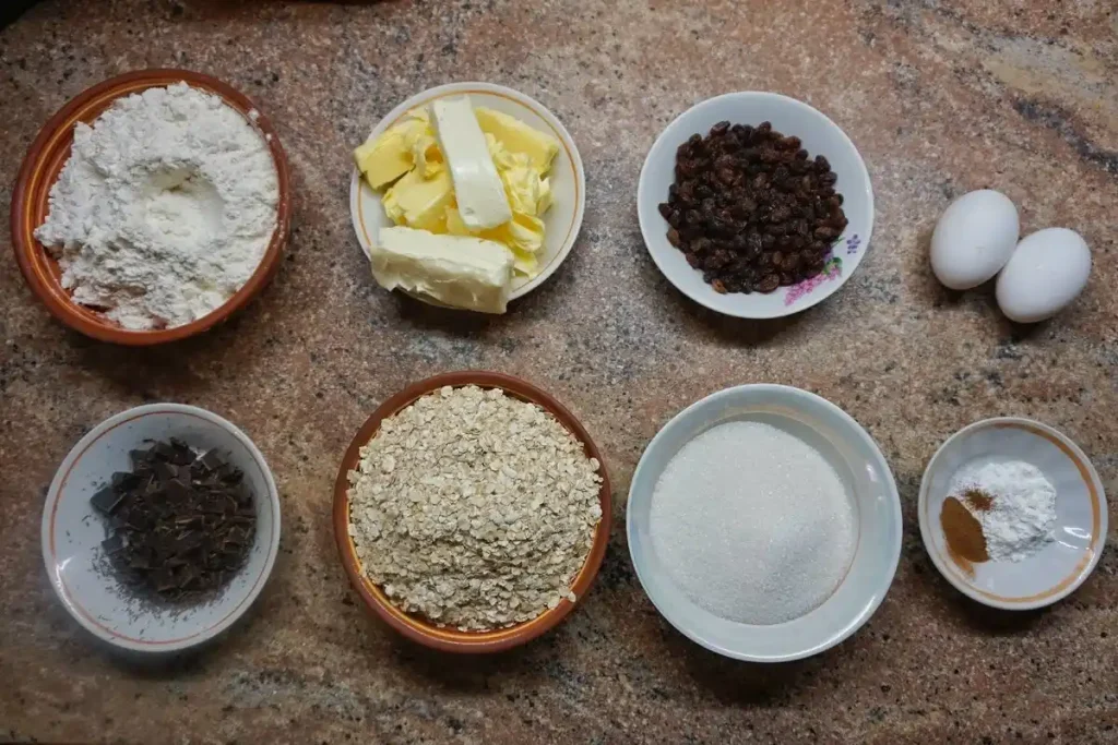 - Aggiungere la farina, il lievito in polvere, il pizzico di sale e l’avena. Mescolare fino a ottenere un impasto omogeneo.