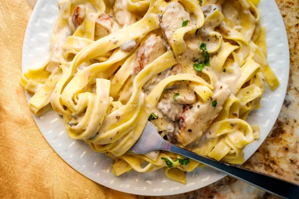 Oggi abbiamo accompagnato le tagliatelle Alfredo con pollo, ma potete sostituire il pollo con verdure, pesce o frutti di mare. Qualunque cosa ci mettiate, è una ricetta sensazionale e molto facile da preparare.