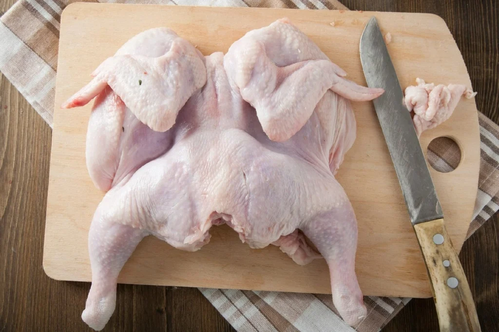 - Tagliare il pollo a pezzi e salare e pepare.