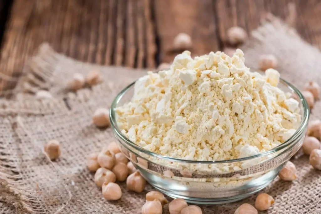 1. In una ciotola, mescolare la farina di ceci con il lievito in polvere e il sale.