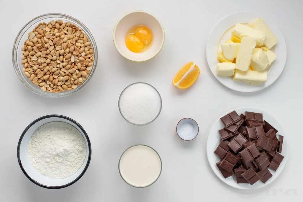 3. Le mandorle devono essere tostate in padella a fuoco medio fino a quando non rilasciano il loro aroma. Quindi vengono tritate e aggiunte quasi tutte al composto di cioccolato, tenendone da parte alcune per la superficie.