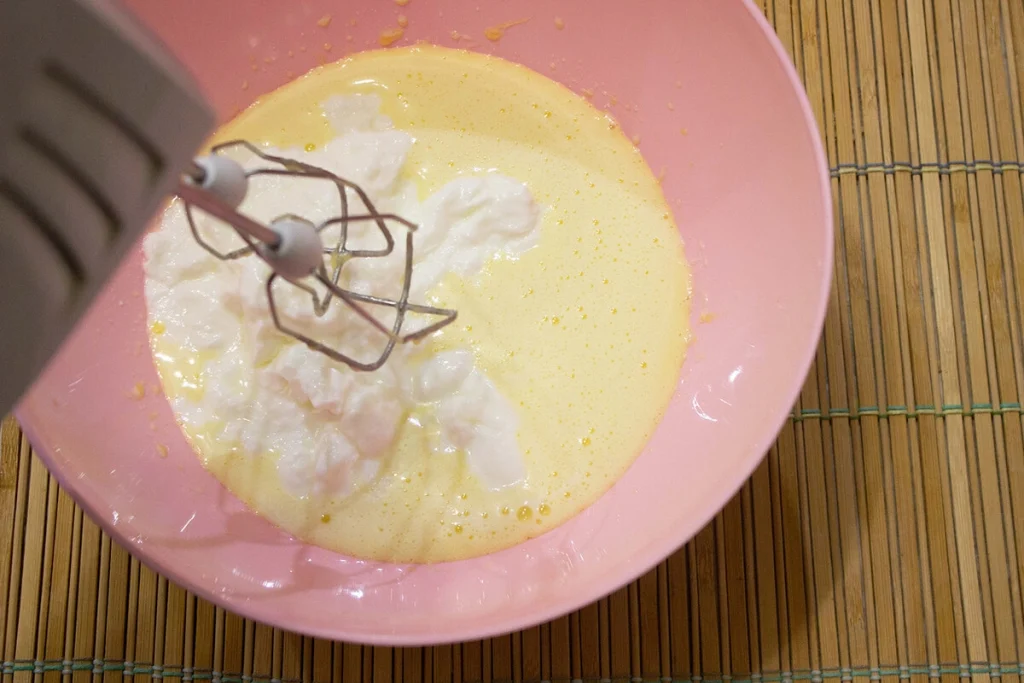 - Mescolare le uova (o gli albumi) con lo yogurt magro e il dolcificante in un recipiente fino a ottenere un composto omogeneo.