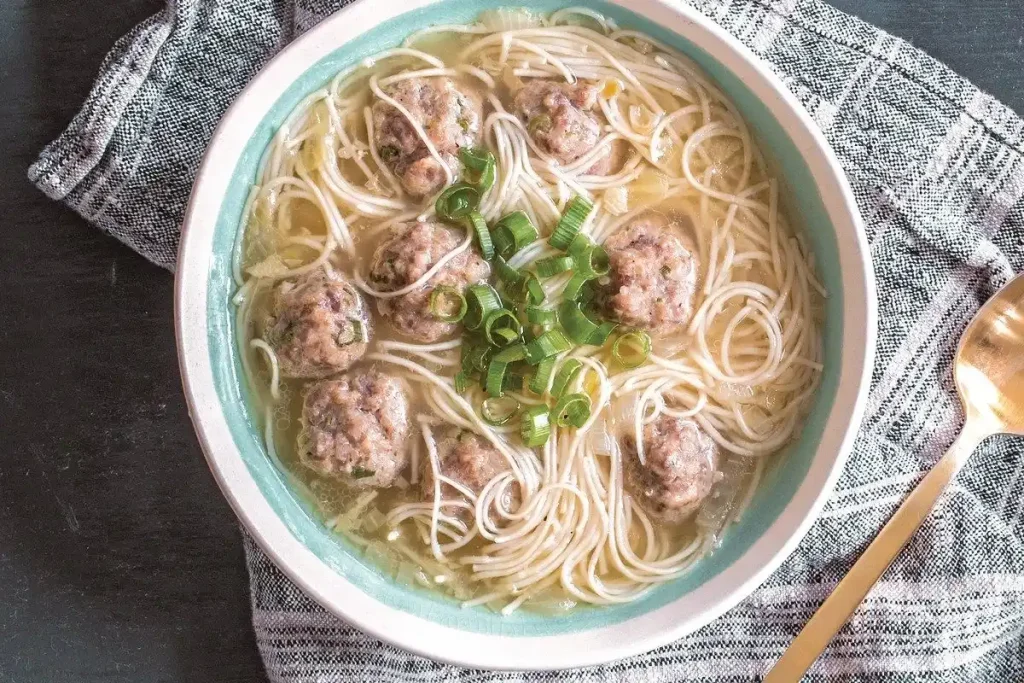 Scalda una padella con olio, aggiungi le polpettine e friggile fino a dorarle. Quindi, aggiungi i noodles e le polpettine di carne alla zuppa e cuoci il tutto per 8 minuti.